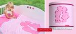 Dit mooie wandlampje van roze ruitstof met zachte applikatie van roze popjes in velours uit de ‘Dutch’ collectie van Little Tulip. Het donkerroze band van velours en het witte kant maken het lampje extra luxe.